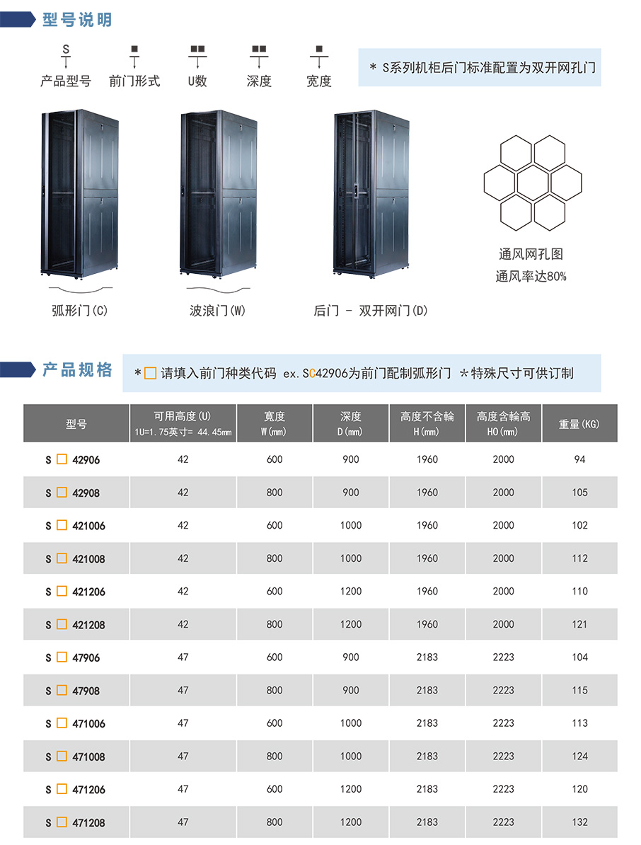 S系列19”伺服器機(jī)柜是依據(jù)ANSI/EIA RS-310-C/D的標(biāo)準(zhǔn)制造,并符合IEC297-2、DIN41491要求,兼容19”國(guó)際標(biāo)準(zhǔn)、公制標(biāo)準(zhǔn)及ETSI標(biāo)準(zhǔn),并通過(guò)UL及SE認(rèn)證。